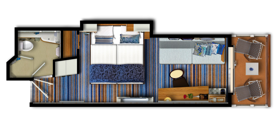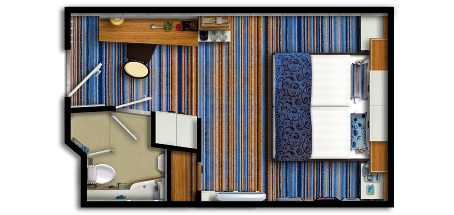 Vo všetkých kategóriách sa nachádza regulovateľná klimatizácia, safe, kúpeľňa so sprchou, sušič na vlasy, telefón, Tv s plochou obrazovkou, župany, papuče a kávovar Nespresso (v cene plavby sú aj 2 kapsule na kajutu denne).