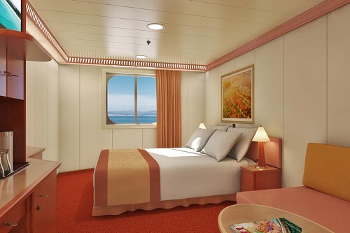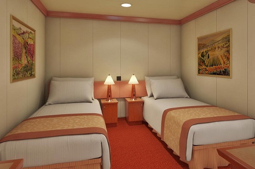 Základné vybavenie všetkých kajút: kúpeľňa so sprchou a WC, TV s plochou obrazovkou, telefón, elektrická zásuvka 110 AC, regulovateľná klimatizácia, postele Carnival Comfort, sušič na vlasy, bezpečnostná schránka, mini chladnička