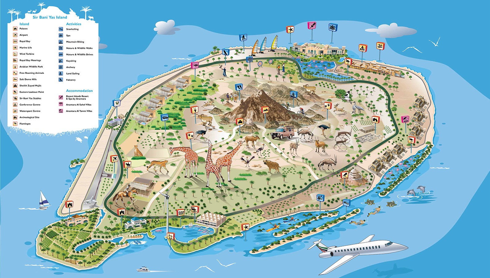 Viac ako polovicu tohto neuveriteľného ostrova tvorí Arabský prírodný park, ktorý je jednou z najväčších rezervácií voľne žijúcich živočíchov v regióne a je domovom viac ako 17.000 voľne žijúcich zvierat. Hostia si tu môžu vychutnať safari v divočine v sprievode odborných sprievodcov.